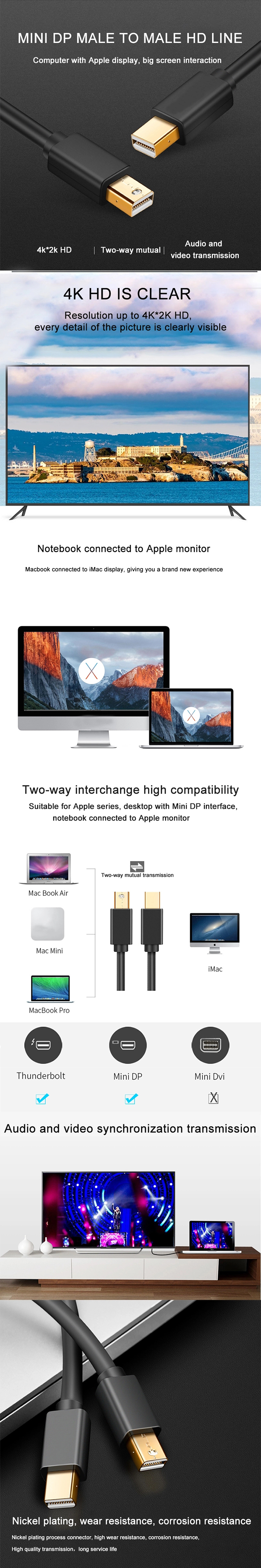 MINIDP 1.4 Cable, M-M, 32AWG, Gold Plated PVC